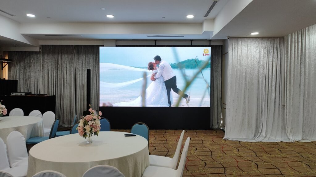 At Caiyida Singapore, we are proud to showcase our 3.84mW x 2.08mH fixed installation: a high-definition LED display screen at The Landmark Red Velvet Ballroom @ Village Hotel Bugis. This collaboration has transformed the venue into a premier destination for high-impact corporate events and weddings.
